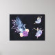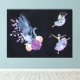 Ballerina Swan Dance Art. Der Hintergrund ist ein schönes Schwarz mit einem etwas dunkelblauen Farbtupfer, der Swan ist blau mit Federn und Blume, und die Ballerinas tanzen und haben Federn in ihren Tanzkleider. Dank Creative Fabrica für die Elemente im Design.