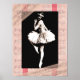 Ein Vintages Foto einer niedlichen Ballerina, das in einem Tanz mit musikalischem Hintergrund posiert.