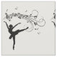 Einfache schwarze Silhouette einer Balletttänzerin mit extravaganten Bar und Noten