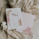 Ballerina Baby Dusche Einladung mit rot-rosa und goldenen Farben. Ein Tutu, ein goldener Rahmen mit Pampasgras und Blume, und Goldkonfetti vereinen sich zu einer edlen Duscheinladung, die bestimmt beeindrucken wird!