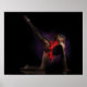Ballett-Pose mit Mädchen in rot und schwarz Tutu auf schwarzem Hintergrund