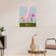 Ein Single steht in der Aquarellskizze auf diesem Plakatdruck. Der Tänzer tanzt zwischen rosa-lila und gelben Blumen in einer grünen Wiese gegen einen blauen Himmel und trägt einen tiefrosa Zehenschuh und blass-rosa Strumpfhosen. Der anpassbare Text kann leicht geändert werden, um zu sagen, was Sie wollen oder ganz gelöscht werden können. Aus meinem digital erstellten Original-Bild.