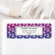 Elegante Rücksendeadressen-Aufkleber mit einem Ballettmuster, das Bilder eines Tutus, Ballettkleid und Ballet Hausschuhe in rosa Aquarellfarbe enthält. Neben schwarzen Silhouetten Ballett-Schuhen und einer Ballerina alles in einem sich wiederholenden Muster. Elegant und elegant auf einem Farbverlauf mit rosa, blauen und lila Farben.