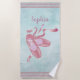 Pink Ballett Schuhe Design Beach Handtuch mit anpassbarem Text.