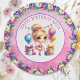Niedlichen kleine Mädchen Geburtstagsparty Papier Teller. Sweet Aquarellbild einer blonden Ballerina in einem rosa Tutu mit hübschen Blumenakzenten.