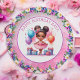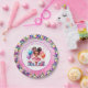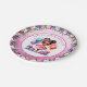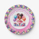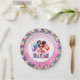 Niedlichen kleine Mädchen Geburtstagsparty Papier Teller. Sweet Aquarellbild einer farbigen Ballerina in einem rosa Tutu mit hübschen Blumenakzenten.