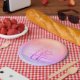 Ballettschuhe auf rosafarbenem Gradient Pappteller