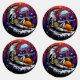 Originelle Vektorkunst eines Astronauten, der einen Mondkäse hat und eine Scheibe an eine Alien übergibt. Erstellt in Vektor.