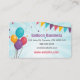 Ein helles, lustiges und farbenfrohes Visitenkartendesign mit Sternexplosionen im Hintergrund, Graffiti, Ballons, hängenden Fahnen und Party-Dekorationen. Ideal für Geschäftsreisende, die Party-Läden, Geburtstagsfeierplaner, Ballon-Bouquet-Verkäufer, Clowns und alles, was mit Kindern und Kinderveranstaltungen und Party zu tun hat.