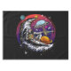 Originelle Vektorkunst eines Astronauten, der einen Mondkäse hat und eine Scheibe an eine Alien übergibt. Erstellt in Vektor.