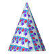 Ballons mit Stars Kindergeburtstag Party Party Hut mit Name. Geburtstagsparty Hut für Kinder. Ideal für einen Jungen oder ein Mädchen, das den Geburtstag feiert. Drei Ballons in Rot, lila und Rosa mit Sternen auf blauem Hintergrund.