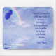 Blaue Ballons mit Regenbogen und inspirierendem Zitat über Wasser schweben.