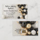 Schöne und elegante, individuell anpassbare Visitenkarte für einen Ballonarchitekten Designer Party Dekorator Unternehmen. Eleganter schwarzer und goldgelber Ballonbogen-Hintergrund, angepasst mit Ihren Details. Modernste Visitenkartenvorlage zum Hinzufügen benutzerdefinierter Texte. Ideal für Ihre besonderen Party-Veranstaltungen, Geburtstags- und Hochzeitsfeiern, oder auch für Social Event Party Planer und Dekor Business.