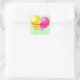 Hellgrün mit farbenfrohen gelben und rosa Ballons.