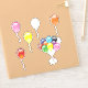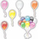 Auf dem 6-Sticker-Blatt stehen einzelne Rosa-, Rot-, Gelb-, Weiß- und Orangenballons und ein Haufen von 10 Ballons. Dies ist eine von zwei verschiedenen 6-Aufkleber-Blättern von Ballons im LDTreasures-Geschäft.