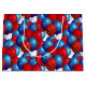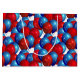Die Geschenktasche aus Papier wird in weißer Farbe mit glänzender Oberfläche mit festlich blauen und roten Ballons gedruckt. Große Größe angezeigt Diese Geschenktasche anpassen oder kaufen, wie es ist.