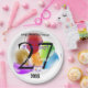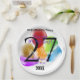 Papier Teller, personalisiert zum Geburtstag mit Ballons als Hintergrund. Tag, Monat, Jahr, "Happy Birthday!", Name, "wünscht euch das Beste" und das Jahr. Koordinierend große Geschenkkarte, Papiertassen, Papiertücher, Papierservietten, Teller, Geschenkpackungen und andere separat verkaufte Artikel. Designed by HAMbyWhiteGlove