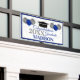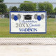 Spaß-Schild mit Ihren Glückwünschen zum Absolvent in einem klassischen und lustigen Design-Layout in ihren Schulfarben mit funkelnd Konfetti, und ihre Schule Farbe Ballons in blau und silber!