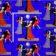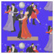 Tanzen mit 3 Paaren mit einem Discoball und -sternen auf einem blauen Hintergrund.