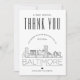 Ein besonderes Dankeschön an die flache Karte, die auf Ihre Hochzeit in der schönen Stadt Baltimore, Maryland zugeschnitten ist. Es verfügt über eine stilvolle Skyline der Stadt auf der Vorderseite der Karte. Im Inneren ist ein Platz für Ihre eigene einzigartige Nachricht und ein optionales Foto. Verwenden Sie die Anpassungsfunktionen, um den Foto-Filter in Farbe zu ändern und ihn bei Bedarf zu verkleinern. Alle Elemente dieses Artikels sind freigeschaltet und einstellbar, also viel Spaß beim Kreieren!