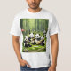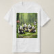 Dieses T - Shirt-Design zeichnet sich durch einen hellen und luftigen Hintergrund (denken Sie Bambus grün oder sanft gelb) mit einer spielerischen Szene einer Panda-Familie genießen ein Fest in einem grünen Bambuswald. Drei bezaubernde Pandas - ein Elternteil, ein auf dem Rücken des anderen Elternteils sitzender Bambus und das andere Elternteil - stürzen sich glücklich auf Bambusstalks, wobei die Option eines winzigen Bambusschosses als Symbol für neues Leben besteht. Der Stil ist spielerisch und kartoonisch, perfekt für Panda-Liebhaber jeden Alters.