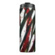 Abstraktes Foto mit breiten, zufälligen Streifen, verwoben in, kühne Farbtöne von, schwarz, rot, dunkelgrün, olivisch und weiß ähneln, Stiele aus Bambus.