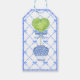 Dieses schicke Geschenkschild zeigt ein Herztopiar mit einem blau-weiß gestreiften Bogen in einem chinoiserie Topf. Der Rand um den Rand ist ein blauer Bambusrahmen. Sie können mit Ihrem Namen personalisieren.