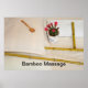 Bambusmassage. Hier sehen Sie die grünen Bambusstäbe und eine rote Blume auf einem Nachrichtentisch. Dieses Plakat eignet sich hervorragend für Massage-Therapeuten und für diejenigen, die in der Wellness-Center- und Schönheitsindustrie arbeiten.