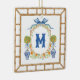 Dieses schicke Design besticht durch ein Bambus-Wappen mit einem blauen Bogen, umgeben von Orangenbaumtopiaren in Chinoiserie-Töpfen. Ein Bambusrahmen befindet sich um den Außenrand. Sie können mit Ihrem Monogramm personalisieren.