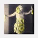 Vintages Farbfoto einer jungen Frau in einem Kleid und Accessoires aus gelben Bananen