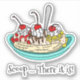 Handgezapfte Cartoon Eiscreme mit Schokolade, Erdbeeren, Ananas, Kirschen und Peitschenaufklebern aus Party. Ein lustiger Eispun, "Scoop, da ist er."