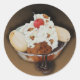 Glasschüssel mit Schokoladeneis mit Bananen, Peitschencreme, Walnüssen und einer Kirsche.