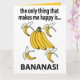 Bananas Fruit Funny Bananas Card Original Design von Nisha Prabhu. Brighten Sie jemandem den Tag mit unserer Bananen-Karte! Dieses unglaublich witzig und lebendige Design zeichnet sich durch unsere Lieblingsfrucht in einer spielerischen Pose aus, die garantiert ein Lächeln und ein Faulenzen bringt. Perfekt für jeden Anlass, ob Geburtstag, Freundschaft oder einfach nur weil - wer Liebe nicht ein bisschen fruchtig Spaß? Diese Karte ist genauso reizvoll wie die Nachricht im Inneren.