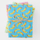 Tropische Bananen, die in Aquarellen bemalt sind, schmücken dieses Set von Geschenkpapier. Passen Sie das Muster an und wählen Sie eine beliebige Farbe für den Hintergrund auf jedem Blatt. Spaß Geschenkpackung für jeden, der gesundes Obst Liebe!