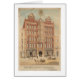 Die Bancroft Bibliotheks-Geschenke: Ziegelstein-Gebäude mit fünf Geschichten in der späten viktorianischen Art. Die bancroft Company Storefronts, die Bücher verkaufen und das stationär auf dem links und das recht vom Gebäudeeingang. Zeichen auf dem Gebäude gelesen: History Company; Verleger; Das GeschichtsGebäude; Bancroft Company; Buchhändler und Schreibwarenhandlungen. Fußgänger, ein kleiner Hund, ein horsedrawn Wagen und Lastwagen, die ein Zeichen von den Schreibwarenhandlungen Bancroft Company trägt, sind vor Gebäude sichtbar. Gezeichnet durch Charles John Dickman im Jahre 1895.