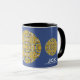 Genießen Sie Ihren morgendlichen Kaffee in einer kaleidoskop-Tasse für sich und Ihre Lieben. Reflexion. Harmonie und Balance in Gelb mit einer Touch Blau.