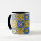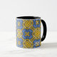 Genießen Sie Ihren morgendlichen Kaffee in einer kaleidoskop-Tasse für sich und Ihre Lieben. Reflexion. Harmonie und Balance in Gelb mit einer Touch Blau.
