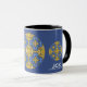 Genießen Sie Ihren morgendlichen Kaffee in einer kaleidoskop-Tasse für sich und Ihre Lieben. Reflexion. Harmonie und Balance in Gelb mit einer Touch Blau.