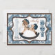 Blauer Bandanna Druck und ein rockender Pferd Cowboy-Thema Baby Dusche Einladung Karte Design.