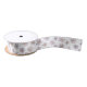 Das Band ist mit Frühlingsblumen in sanften lila Farben bedruckt.
