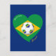 Diseño conmemorativo del mundial de fútbol para los aficionados del equipo nacional de Brasil., formado por un balón de fútbol dentro de un corazón con los colores nacionales de la bandera.