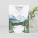 This wedding invitation features a Banff Canada Rocky Mountains Rockies Alberta Destination Watercolor for Mountain Wedding.
