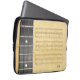 Diese Neopren-Laptop-Hülse 13-14" kennzeichnet das Bild des Teils eines Banjo fretboard im Holz mit Perleneinlegearbeit und 4 Schnüre auf einem Hintergrund der Noten auf dem Altern des goldenen gelben Manuskriptes. Das dunkle Holz des fretboard auf den links und goldenen Farben des Manuskriptes auf dem Recht stellt für einen ins Auge fallenden Farbkontrast zur Verfügung. Merken Sie bitte, dass der Entwurf nicht auf der Rückseite der Hülse gedruckt wird. Er ist schwarz.