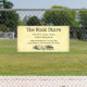 Ein Business-Banner im Buchzeichen-Stil mit bearbeitbaren Vintagen Serifenbriefen und Platz für Ihre Info, mit alten Büchern und einer Schreibquill auf einem Imitat Pergament Hintergrund.