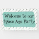 Ein Thema der 60er Jahre mit atomaren Sternen, Starburts und Formen. Die Farben sind schwarz, blau, rosa, aquamarin und gelb auf weißem Hintergrund. Ideal für Ihr modernes Party aus dem 25. Jahrhundert.