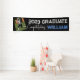 Custom Foto Abschluss Gratulationen Banner in schwarz, mit weißem und blauen benutzerdefinierten Text getan. Personalisieren Sie den Text und das Foto, um den Anzug Ihrer Abschluss-Veranstaltung benötigt.
