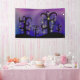 Eine digital gezeichnet Fantasielandschaft von silbrigen Bäumen, die Früchte in Sternen und Monden tragen. Von den dunklen Ästen hängen goldene Perlenketten, die in einer Vielzahl glühender Sternformen enden, halbmondförmig und Vollmonde, die jeweils durch eine glänzende Sternexplosion an den Ast geklebt sind. Der Hintergrund ist ein blauer und rosafarbener Zweilichthimmel, der mit winzigen Glitzern bestickt ist und von glitzernden Sternen umgeben ist.