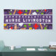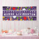 Creative Pflege Schule Abschluss Banner mit medizinischer Versorgung, lila Hintergrund und ein großes Glückwunsch für Krankenschwester Abitur. Zum Personalisieren bearbeiten Sie den Text, um den Namen der Krankenschwester hinzuzufügen.