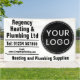 Bewirben Sie Ihr Heizungs- und Sanitärgeschäft mit einem auffälligen Banner, auf dem Ihr Logo erscheint. Machen Sie es persönlich, indem Sie den Namen Ihres Unternehmens, Ihre Telefonnummer und E-Mail-Adresse hinzufügen. Außenbanner für ein Heizungs- und Sanitärunternehmen.