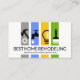 Vier farbige Banner reihen den mittleren Teil der Karte mit handwerklichen Werkzeugen in sich. Die Werkzeuge stellen einige der Leistungen dar, die Sie anbieten könnten, z.B. den Hammer für die Reparatur von Zuhause, die Leckwasseranlage für die Klempnerei, die Glühbirne für Elektroarbeiten und die Bürste für die Umlackierung. Unter all dem steht der überdimensionale Slogan "BEST ZUHAUSE REMODELING", den Sie ändern können und der Firmenname. Hinter einem weißen Cover befindet sich oben ein kreatives "handyman tools Zuhause" Logo, das Sie verwenden können, gefolgt von Ihrem renommierten Namen, Kontaktdaten und einem Slogan zur Veröffentlichung Ihrer Dienstleistungen. Eine tolle Karte für Gebäude- und Bauthemen.